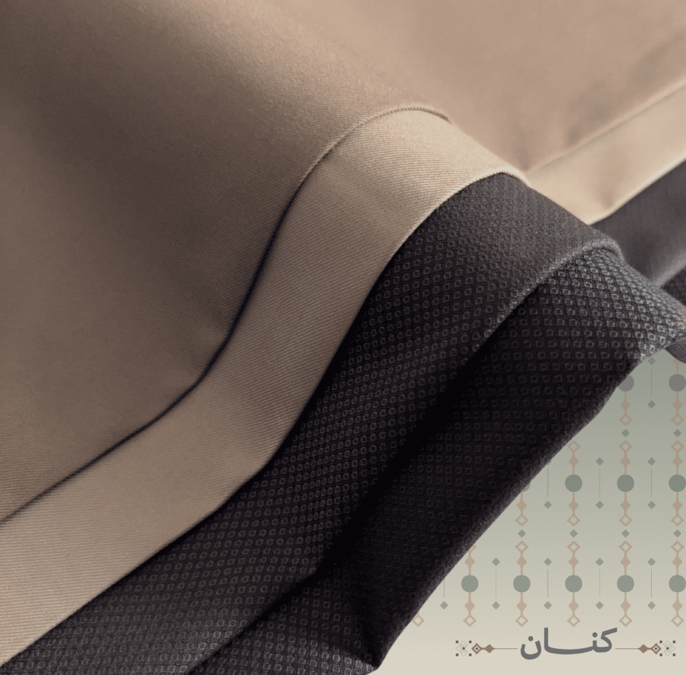 - ثنائية الكلاسيكية الأنيقة: قطعتان من القماش السادة بألوان فاتحة ودافئة (بيج فاتح وغامق)، تتميز بأناقتها الكلاسيكية المناسبة لكل ذوق.